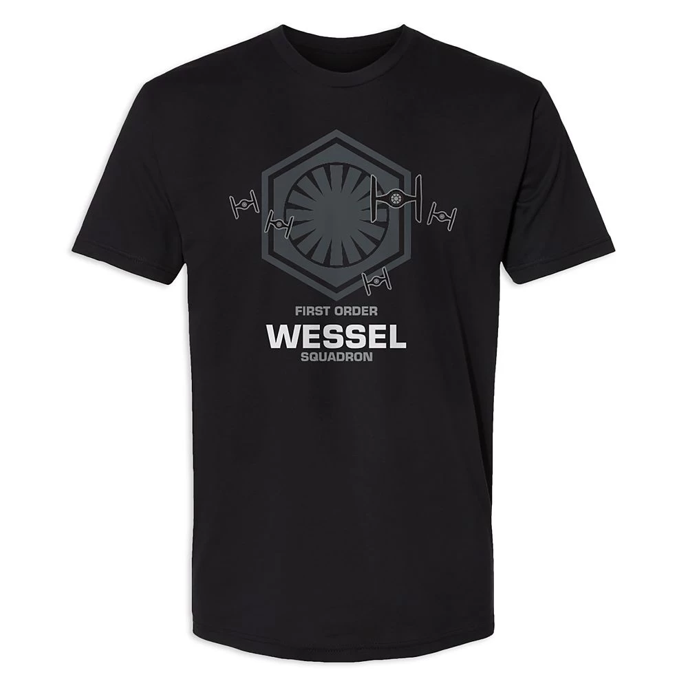Show your support for the First Order with this customizable Star Wars t-shirt. Available in a choice of colors, it features the First Order’s symbol with TIE fighters on a mission. Personalize the ”First Order Squadron” text with the name of your choice and lend a familial flair to your trips to a galaxy far, far away, or closer to home.