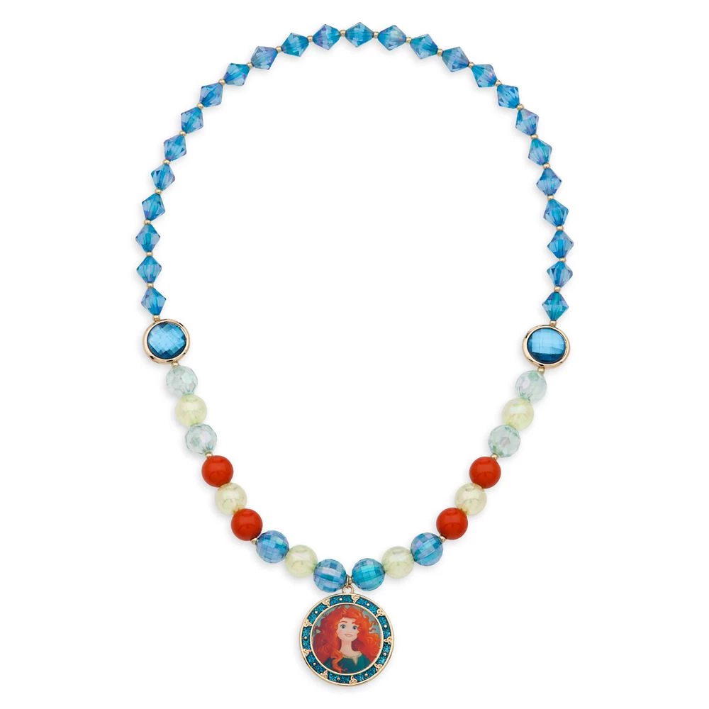 Lend a royal touch to any Merida ensemble with this breathtaking jewelry set designed to complement our costume collection or enjoy for anytime play. A beaded necklace with faceted gems is matched by earrings and two bracelets plus glittering Merida pendant and charm.