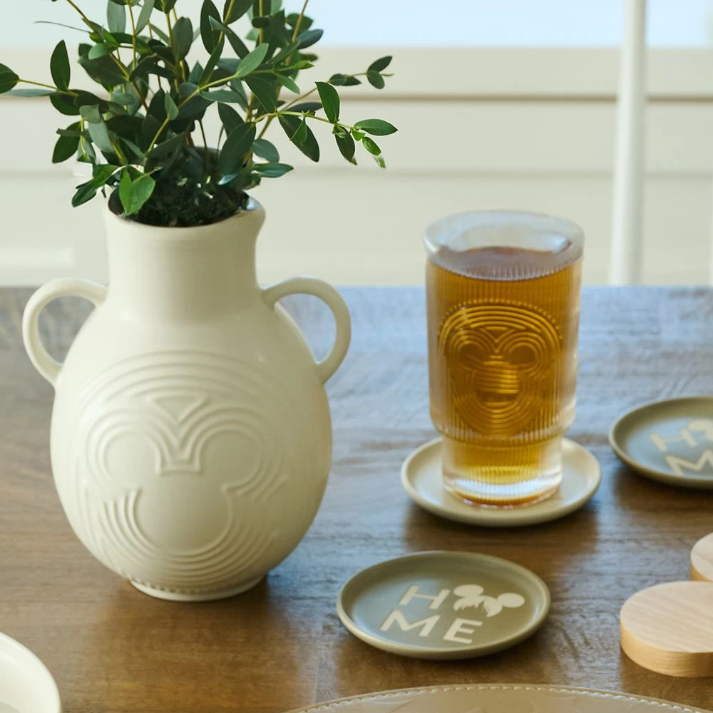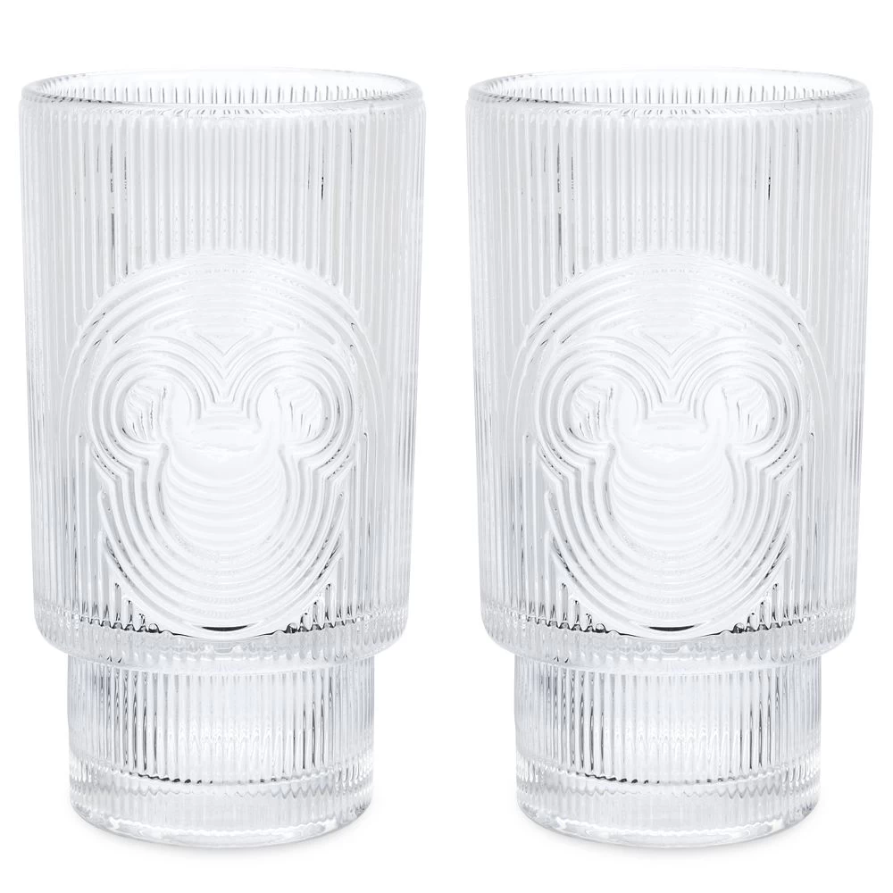 This set of glasses is sure to be a clear favorite. Crafted in lead-free crystal, the two glasses feature a ridged design incorporating a concentric Mickey icon outline on one side. The elegant drinkware pair will add character and style to your home décor.