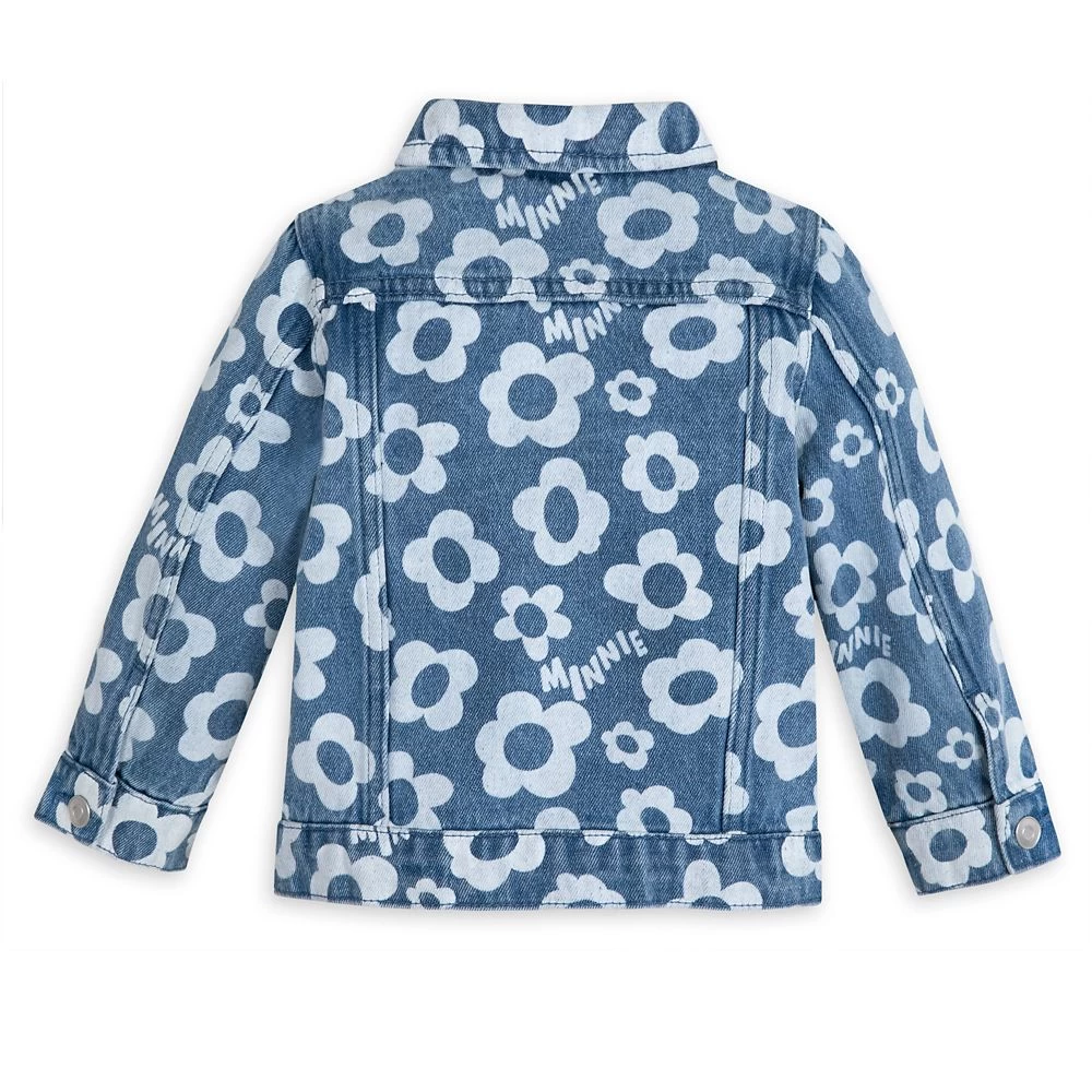 Minnie brings her contemporary sense of style to a fashion classic with this denim jacket. A bold allover floral print, complete with ”Minnie” namechecks, transforms this timeless top into a chic favorite for your little cutie. Topped with Minnie’s face embroidered on the chest, this will inspire smiles wherever they go.