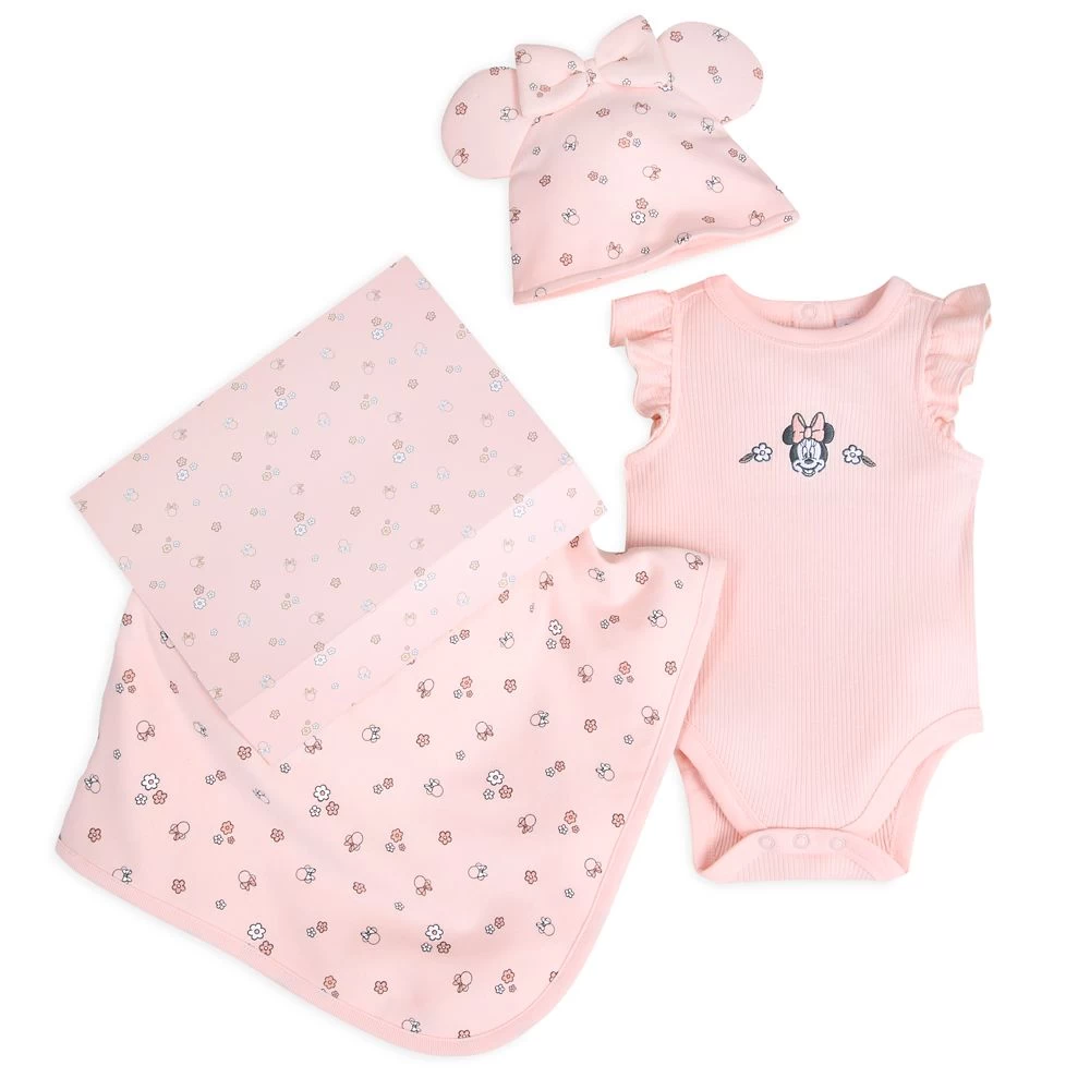 Turn up the smiles with this adorable ribbed bodysuit and knit blanket set topped off by a mouse-eared Minnie bonnet with bow. You’ll love the warm nostalgia and your baby will love the comfort. It comes in a coordinating sturdy gift box with magnetic closure and a form on which to record baby’s details.